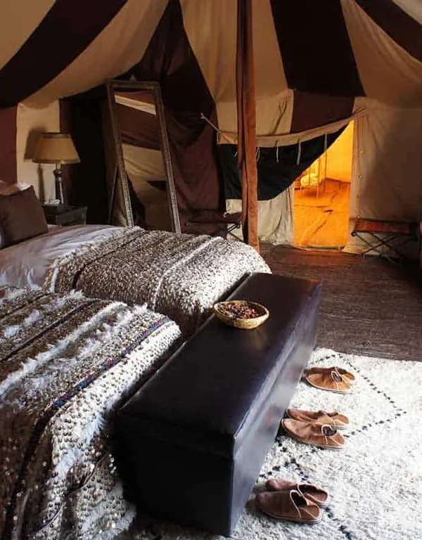 Drive through palm oases and Berber villages toward the spectacular Todra Gorge. Continue to Merzouga, where you’ll ride camels (or 4×4) to your luxury desert camp for a sunset over the dunes and dinner under the stars.